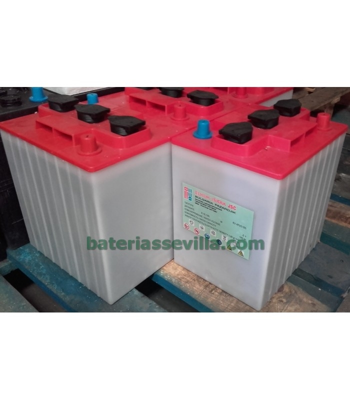 Batería de Tracción monoblock de placa tubular, 6V 4PzS 185Ah en C5. Pertenece al fabricante europeo Iskra, demuestran su gran capacidad y polivalencia prestando un rendimiento prolongado de más de 1200 ciclos y consistente en diversas aplicaciones. Batería de plomo-ácido que requiere mantenimiento. Uso en Buggies golf, vehículos de limpieza, plataformas elevadoras, apiladores y transpaletas.